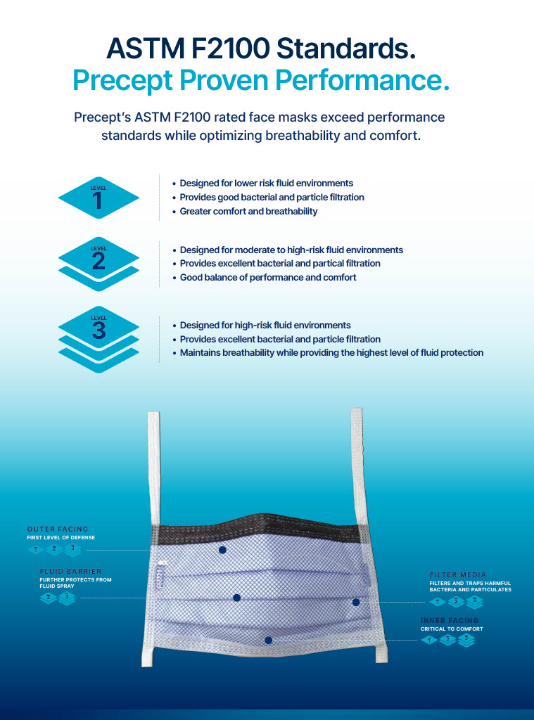 Precept® masks exceed performance standards while optimizing breathability.
